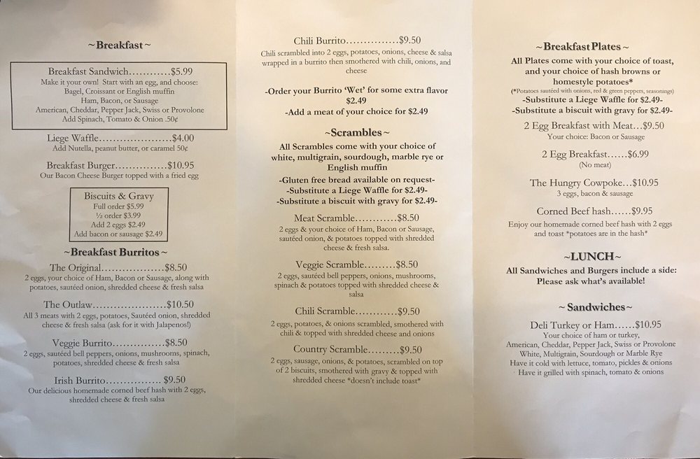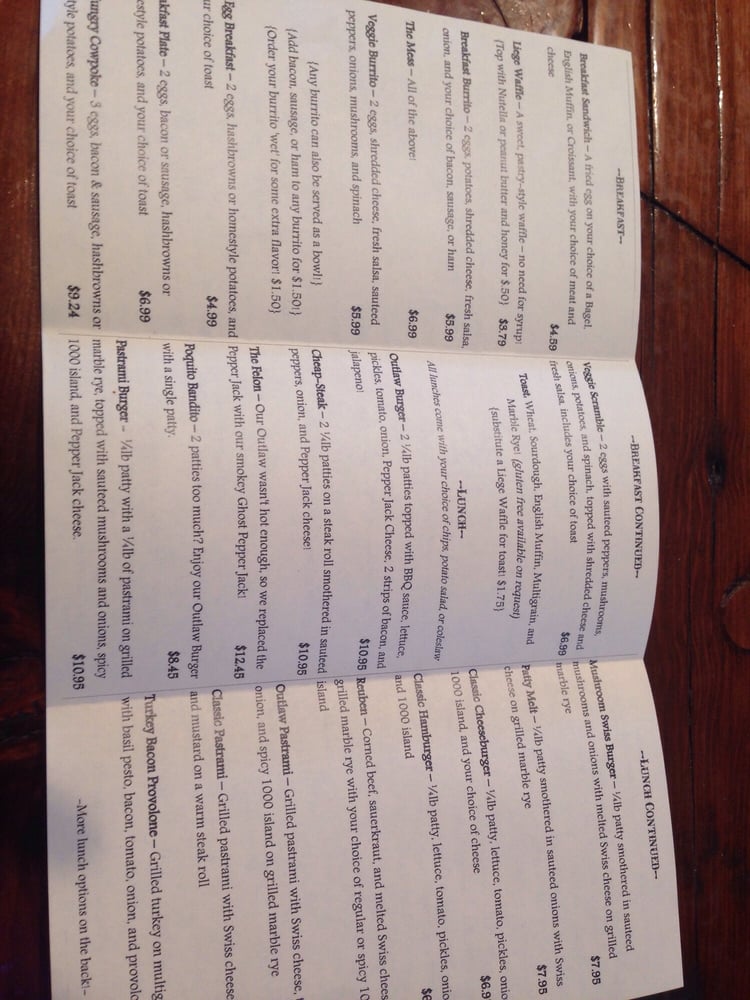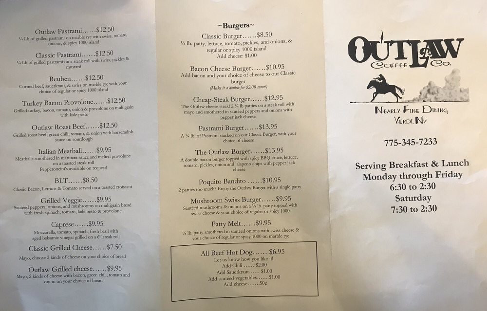 Outlaw Coffee Cafe Menu (2025 Update)